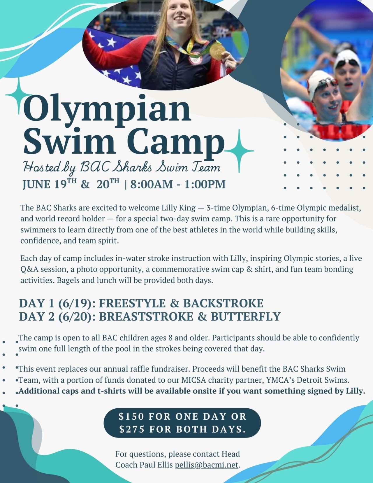 One highlight we are especially excited about is the Lilly King Olympian Swim Clinic. This is a rare and incredible opportunity for our swimmers to learn from an Olympic champion, gain inspiration, and experience something truly special. Participation in this clinic will replace our traditional raffle fundraiser and Corsan Challenge, so we ask all families to come out, support the team, and take part in this unforgettable event. You can sign-up on the BAC Club app or the BAC Club web portal (Please see the flyer below).